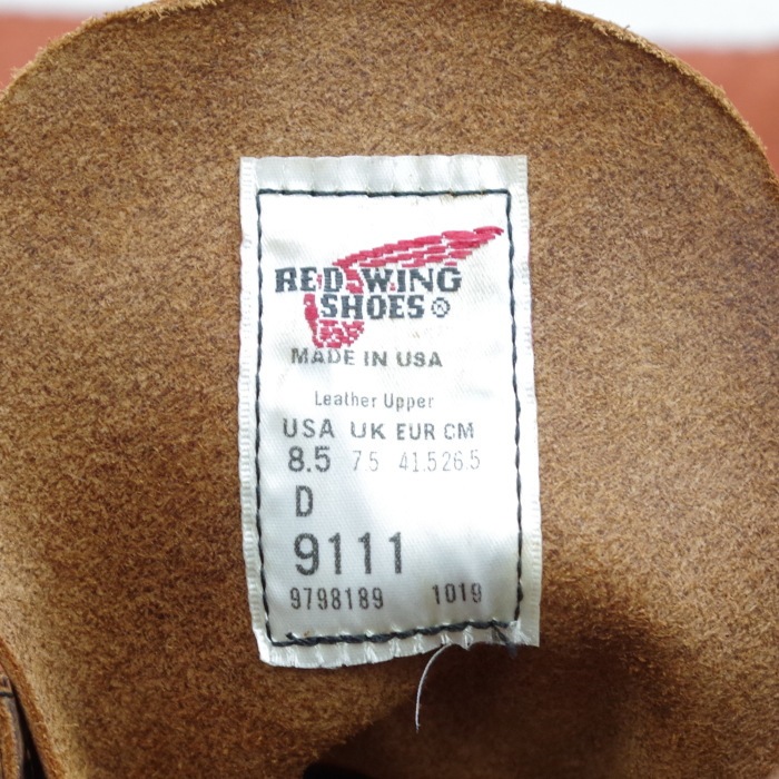 RED WING 9111 【US8.5/26.5cm】 【8189】 【正規アウトレット品】 レッド・ウィング 現物画像 ファクトリーセカンド ラウンドトゥ