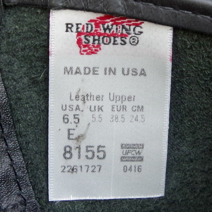 商品名 : RED WING 8155【US6.5/24.5cm】 【1727】 【正規アウトレット品】 レッド・ウィング 現物画像 ファクトリーセカンド ペコス ウエスタン
