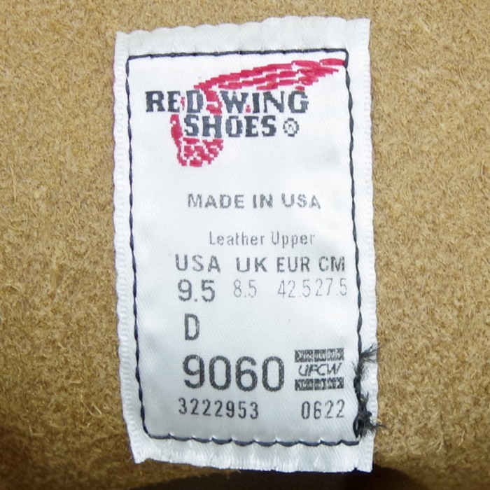 商品名 : RED WING 9060 【US9.5/27.5cm】 【2953】 【正規アウトレット品】 レッド・ウィング 現物画像 ファクトリーセカンド ベックマン フラットボックス